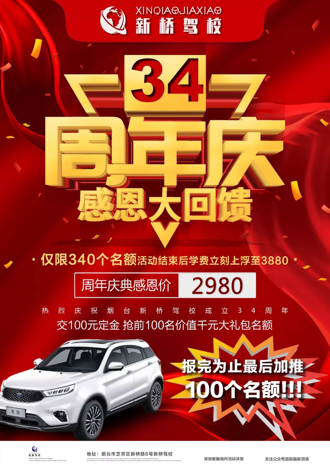 感謝大家對(duì)新橋駕校的大力支持,活動(dòng)到目前為止340個(gè)名額已經(jīng)全部報(bào)完!大家的學(xué)車熱情實(shí)在是太高漲了,官方?jīng)Q定臨時(shí)加推最后100個(gè)名額!活動(dòng)截止后立刻漲價(jià),還在觀望的小伙伴趕緊下手吧!